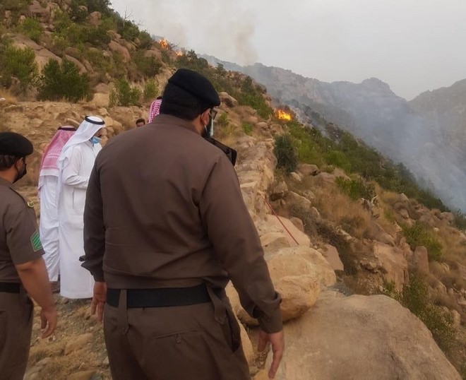 دوسری طرف محایل کے کمشنر علی بن ابراہیم الفلقی نے آگ بجھانے کی کارروائی کی نگرانی کی اور متاثرہ علاقے کا دورہ کیا ہے۔