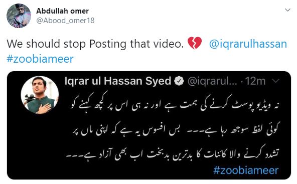 ویڈیو ٹوئٹر پرآتے ہی کچھ ہی گھنٹوں میں وائرل ہو گئی۔ زوبیہ عامر کے ٹرینڈنگ میں آنے پر صارفین نے اس حوالے سے بات چیت شروع کر دی۔