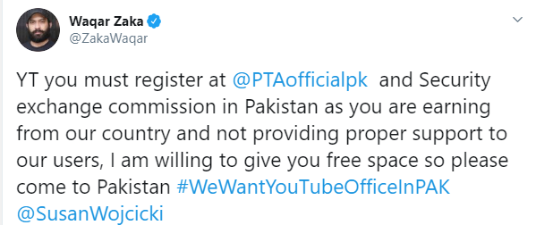 کچھ ایسا ہی معاملہ گزشتہ چند گھنٹوں سے پاکستان میں سوشل میڈیا ٹائم لائنز پر نمایاں ہے جہاں پاکستانی صارفین یوٹیوب سے مطالبہ کر رہے ہیں کہ وہ پاکستان میں اپنا دفتر کھولے تاکہ انہیں درپیش مسائل بروقت حل کیے جا سکیں۔
