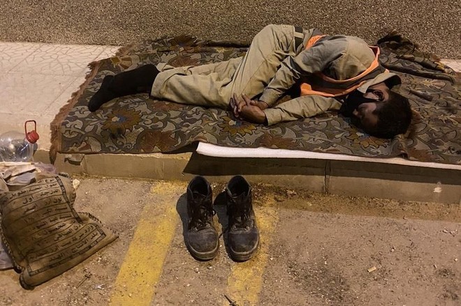 سڑک کے کنارے سوئے غیر ملکی ورکر کی تصویر پر ایکشن