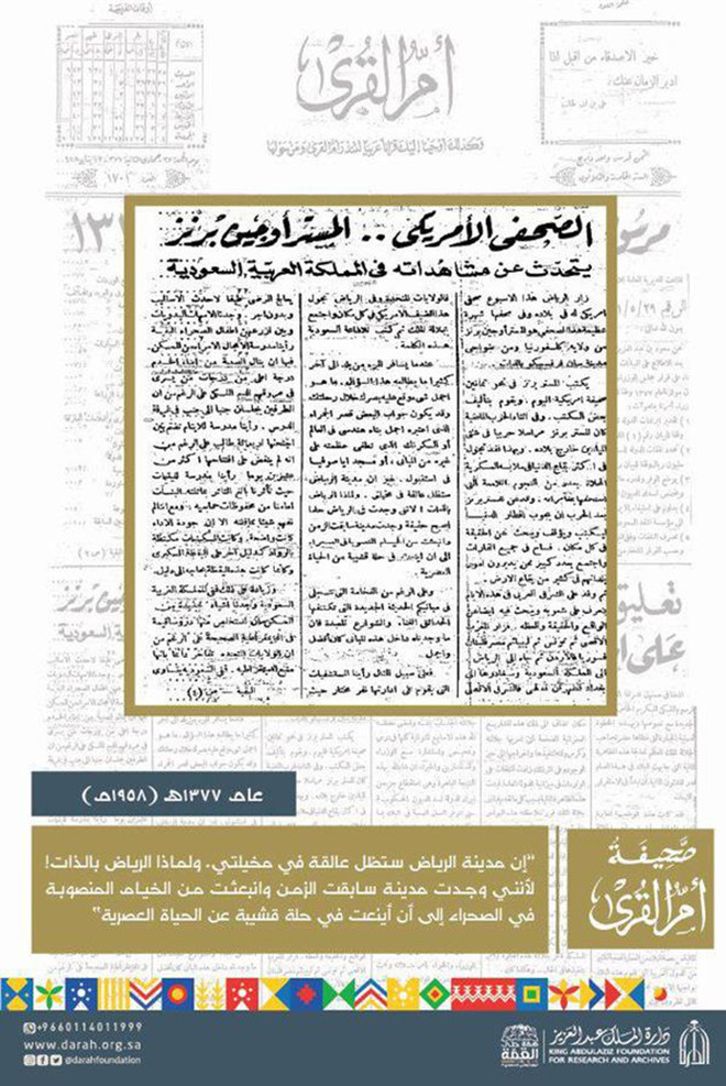 اخبار 24 کے مطابق ام القری جریدے نے 1958 میں امریکی صحافی کے ریاض مشاہدات شائع کیے تھے-