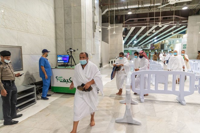 سعودی حکومت نے کورونا وائرس کے پھیلاو کے باعث عمرے پرعارضی پابندی ختم کرنے کے بعد زائرین کی رہنمائی کے لیے پانچ سو اہلکارتعینات کیے ہیں جو روزانہ عمرہ زائرین کے گروپس کو منظم کررہے ہیں۔