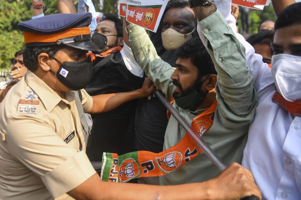 بھارتیہ جنتا پارٹی کے کارکنوں نے ارنب گوسوامی کی گرفتاری کے خلاف احتجاج کیا (فوٹو: اے ایف پی)