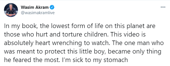 کچھ ایسا ہی معاملہ ایک حالیہ ٹویٹ کے ساتھ ہوا جس میں پاکستان کرکٹ ٹیم کے سابق کپتان وسیم اکرم نے ایک کمسن بچے کی باپ کی جانب سے مبینہ تشدد کی شکایت کرتی ویڈیو پر تبصرہ کیا ہے۔