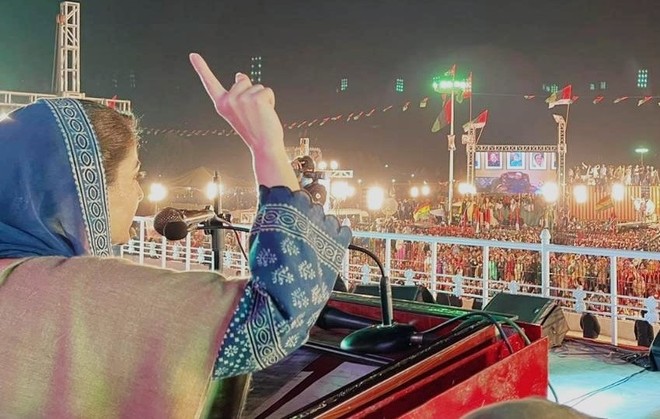 جلسے کے دوران عوام کی جانب سے سب سے زیادہ جوش اور حاضری اسی وقت دیکھنے میں آئی جب مریم نواز خطاب کر رہی تھیں۔