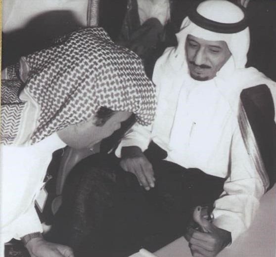 شاہ سلمان کی اس وقت عمر تین برس تھی۔ وہ منی میں حج وفود کے سربراہوں سے اپنے والد بانی مملکت کے خطاب کے موقع پر ان کے پہلو میں بیٹھے ہوئے ہیں۔