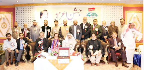 ریختہ دانی کے اس انوکھے پرتوکے حامل اس شعر کا مصرع ِ ثانی عالمی اردو مرکز، جدہ کے زیرِ اہتمام سجائی جانے والی کسی بھی بزم یا شام، اجتماع یا پروگرام ، نشست یا قیام، بحث یا کلام پر صادق آ تا ہے کیونکہ شائستگی، شستگی، شان و شوکت ،تہذیب و تمکنت ،شعار و معیار، نستعلیقیت و وقاران کا خاصہ ہوتی ہے۔وہ جانتے ہیں کہ پیچ کیا اور تاب کیا ہے ، پیری کیا اور شباب کیا ہے، حُسن کیااور نقاب کیا ہے، بے باکی کیا اور حجاب کیا ہے، پاﺅں کیا اور رکاب کیاہے، علم کیا اور کتاب کیا ہے ،درس کیااور نصاب کیا ہے۔اس کا ایک ثبوت جدہ کے مقامی ریستوران کے حال میں پاکستانی مذاق سے معمور لذتِ کام و دہن کے بعد بپا کیا جانے والا ”جشنِ اعزاز“ تھا۔ اس انداز میں کسی شاعر ، ادیب ، سخنور یا دانشور کو عطائے اعزاز بھی بلا شبہ ”عالمی اُردو مرکز، جدہ کی ”طرح“ ہے جس کے لئے اس مرکز کے تمام صاحبان و ذمہ داران مبارک باد کے مستحق ہیں۔بہر حال ہم نے اس جشن میں جو کچھ” سہا“ یا محسوس کیا، انہیں 3مصرعوں کے ساتھ ایک تضمین کی شکل میں پیش کرکے اپنے خیالات کی ترجمانی کرنے کی کوشش یوں کی ہے کہ: