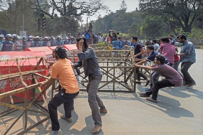 ڈھاکہ میں طلبا نے وزارت داخلہ کی جانب مارچ کرنے کی کوشش کی۔ (فوٹو: اے ایف پی)