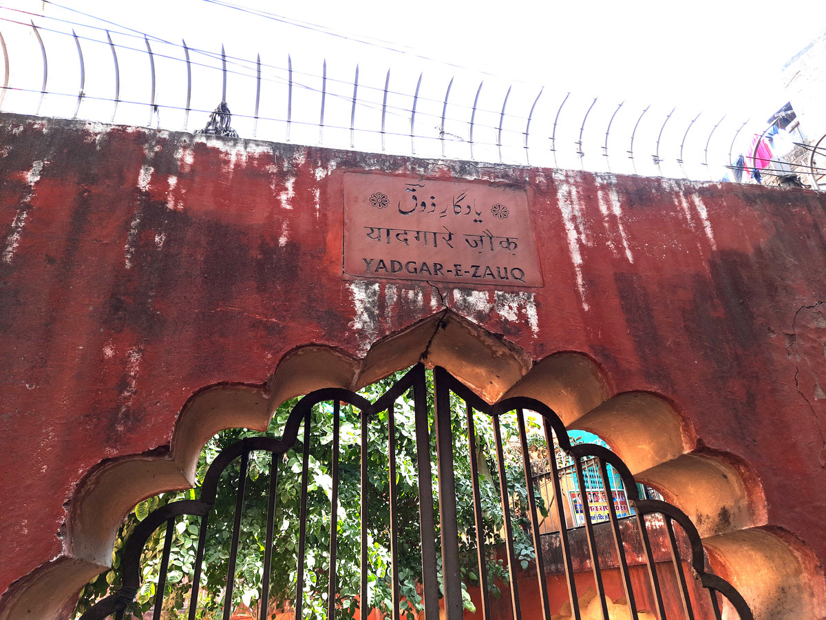 سرخ بوسیدہ دیوار سے گھرا ایک حصہ جہاں اب ذوق کا مزار محفوظ ہوگیا ہے۔