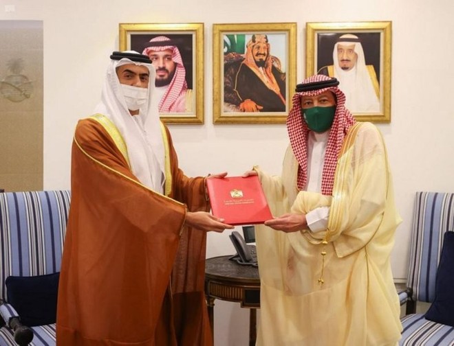 سعودی خبررساں ادارے ایس پی اے کے مطابق انجینیئر ولید الخریجی نے اماراتی سفیر سے اسناد سفارت وزیر خارجہ شہزادہ فیصل بن فرحان کی نیابت کرتے ہوئے وصول کیں بعد ازں یہ اسناد خادم حرمین شریفین شاہ سلمان بن عبدالعزیز کو پیش کی جائیں گی۔