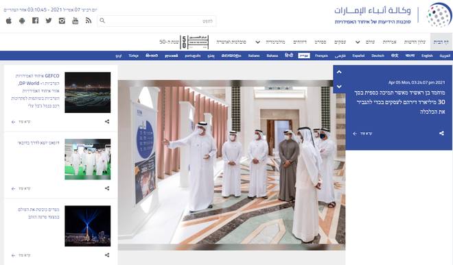 اماراتی نیوز ایجنسی کی عبرانی زبان میں سروس