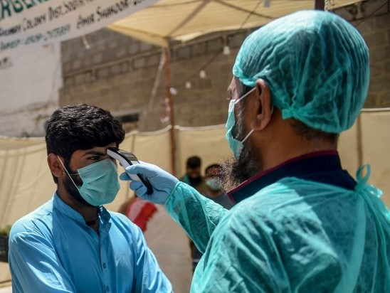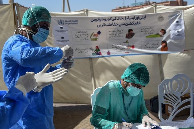 عالمی ادارہ صحت کے مطابق پاکستان کے 17 بڑے شہروں اور اضلاع میں کورونا کیسز کی شرح پانچ فیصد سے زیادہ ہے (فوٹو: اے ایف پی)