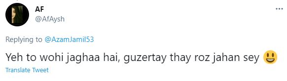 ٹوئٹر ہینڈل اے ایف عائش نے لکھا کہ ’یہ تو وہی جگہ ہے گزرتے تھے ہم روز جہاں سے‘