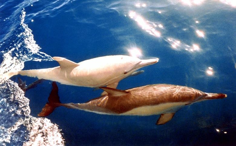 ایک نایاب البینو ڈولفن جنوبی آسٹریلیا کے سمندر میں تیر رہی ہے۔