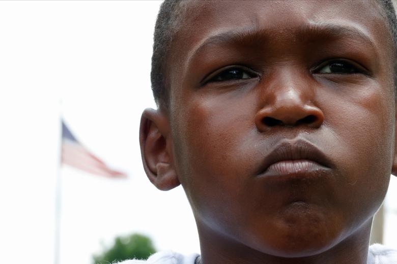 سات سالہ چارلس ہال ٹینیسی میں میموریل پارک میں منعقدہ تقریب کے دوران سول وار کی تاریخ سے متعلق تقریر سن رہے ہیں۔
