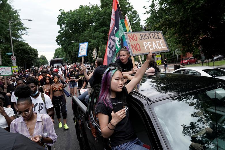 واشنگٹن میں لوگ پیدل مارچ کر رہے ہیں تو کچھ گاڑیوں میں سوار ہیں۔