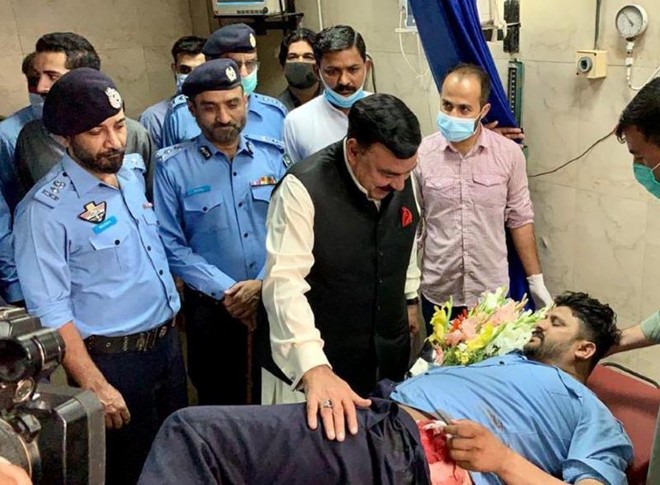 اسلام آباد کے پمز ہسپتال میں ڈکیٹی کی واردات کے دوران زخمی ہونے والے پولیس اہلکاروں کی عیادت کے بعد میڈیا سے گفتگو میں وزیر داخلہ کا کہنا تھا کہ ’یہ عمران خان کا بہت بڑا فیصلہ ہے کہ ہم امریکن کو افغان قوم اور عوام کے خلاف کوئی اڈے نہیں دیں گے اور افغانستان کے خلاف پاکستان کی سرزمین استعمال ہونے کی اجازت نہیں دیں گے۔‘