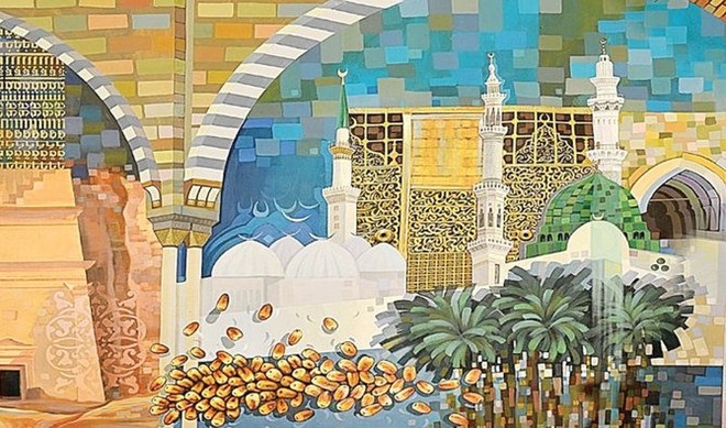 آرٹ ورک میں زائرین اور حج کے مقدس فریضے کی عکاسی کی گئی ہے (فوٹو: سپلائیڈ)