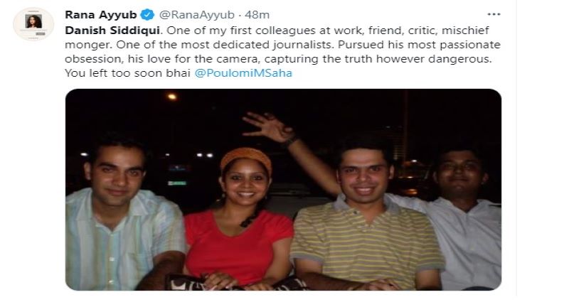 انڈین صحافی اور دی وائر کی ایڈیٹڑ عارفہ خانم شیروانی نے دانش صدیقی کو بہت نڈر صحافی قرار دیتے ہوئے اپنے ٹویٹ میں لکھا کہ ’یہ دل دہلا دینے والی افسوس ناک خبر ہے۔‘