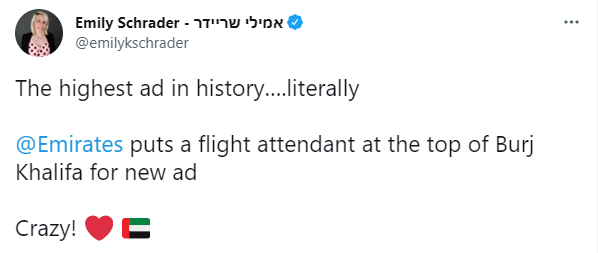 Here’s how we made it to the top of the world’s tallest building, the @BurjKhalifa. https://t.co/AGLzMkjDON@EmaarDubai #FlyEmiratesFlyBetter pic.twitter.com/h5TefNQGQe— Emirates Airline (@emirates) August 9, 2021