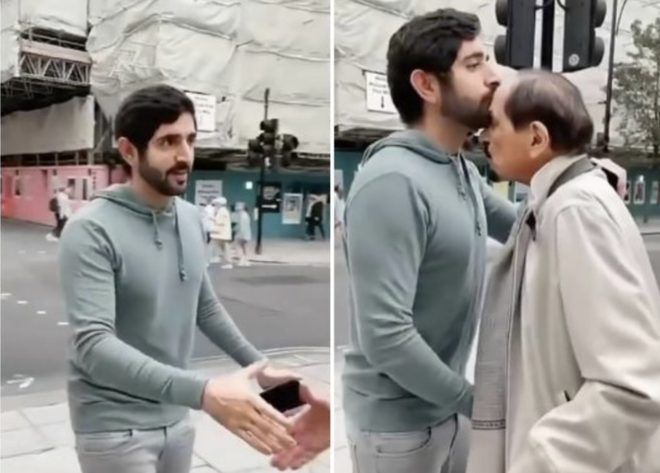 عرب نیوز کے مطابق انسٹاگرام کے فین پیچ @faz3video پر شیئر کی گئی اس ویڈیو میں شیخ حمدان عجمان کے حکمران سے لندن کی آکسفورڈ سٹریٹ میں سیلف رِج ڈیپارٹمنٹ سٹور کے قریب ملے۔