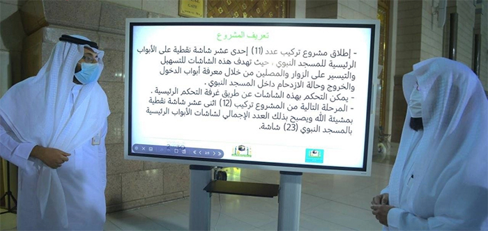 سرکاری خبر رساں ایجنسی ایس پی اے کے مطابق مسجد نبوی کے گیارہ بڑے دروازوں پر سکرین نصب کی گئی ہیں۔ ان سکرینوں کی بدولت زائرین کو یہ معلومات ملتی رہیں گی کہ کس دروازے سے اندر جاسکتے ہیں اور کس دروازے سے باہر آسکتے ہیں۔