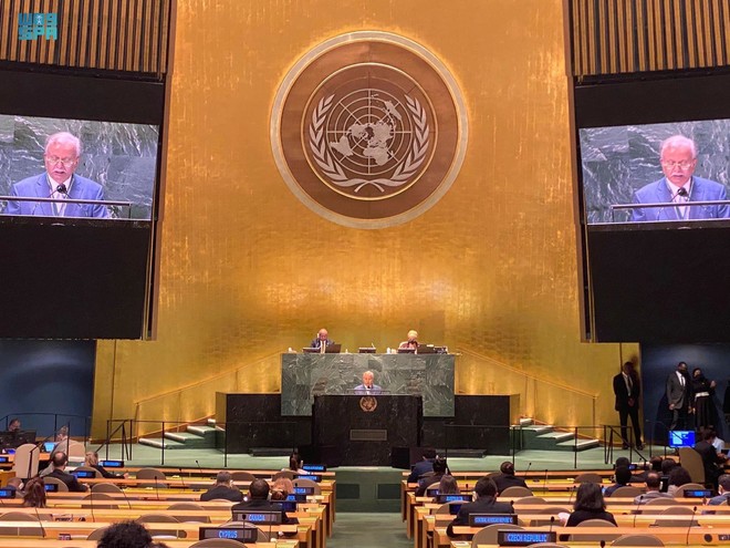 سعودی سفیر نے بحرالکاہل اور ایشین گروپ کی نیابت کرتے ہوئے خطاب کیا(فوٹو ایس پی اے)