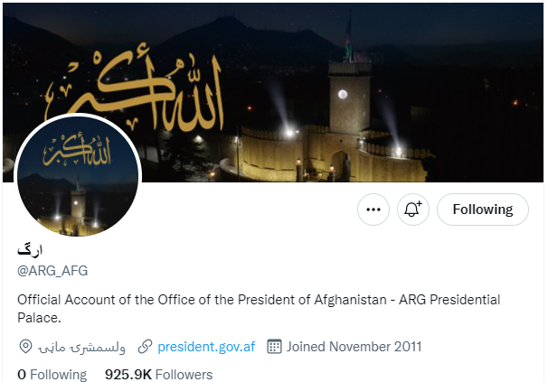 افغان حکومت کے جن اکاؤنٹس سے ٹوئٹر نے بلیو بیجز ختم کیے ہیں ان میں افغان ایوان صدر ’ارگ‘ کا اکاؤنٹ بھی شامل ہے۔