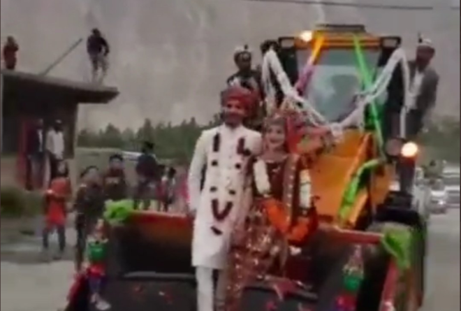 عام طور پر شادیوں میں دلہا اور دلہن کے لیے ایک الگ گاڑی سجائی جاتی ہے جس میں دونوں سفر کرتے نظر آتے ہیں، لیکن ہنزہ ویلی سے تعلق رکھنے والے ایک نوجوان نے اپنی شادی کے لیے ایکسکویٹر کا استعمال کیا۔