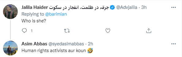 خاتون کے اصرار پر تبصرہ کرنے والے کچھ صارفین نے ان کا تعارف جاننا چاہا تو دیگر نے جواب میں لکھا کہ ’وہ ہیومن رائٹس ایکٹیوسٹ ہیں۔‘