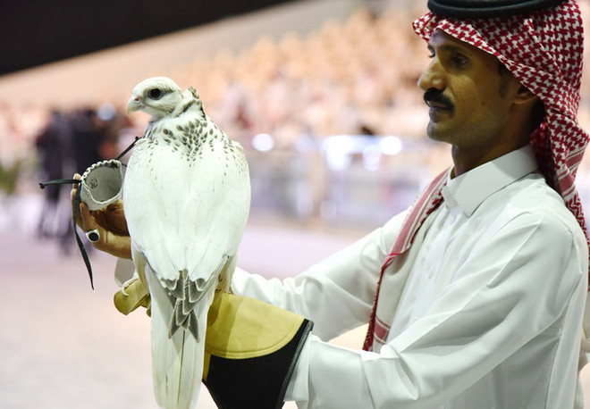نادر پرندوں کی نیلامی سعودی فالنکز کلب کے زیر اہتمام ریاض میں جاری ہے (فوٹو: ٹوئٹر)