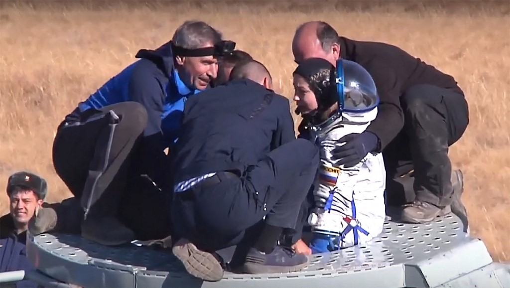 خلا میں پہلی فلم کی عکس بندی کے لیے انٹرنیشنل سپیس سٹیشن پر 12 دن گزارنے کے بعد روسی عملہ زمین پر واپس لوٹ گیا ہے۔