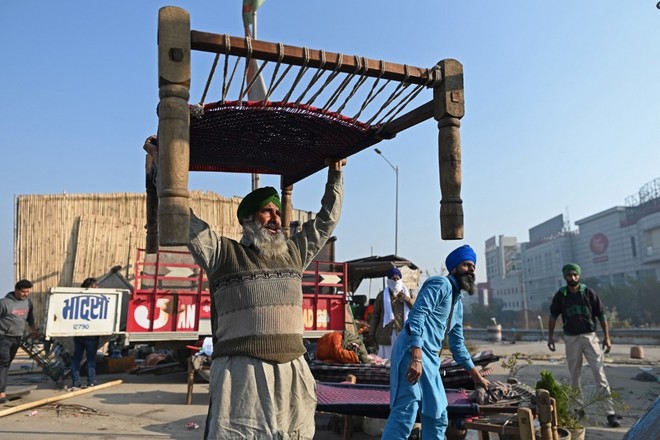 احتجاج ختم کرنے کے بعد کسان اپنا سامان اٹھا رہے ہیں۔ (فوٹو: اے ایف پی)