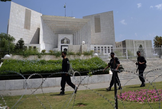 جسٹس عمر عطا بندیال نے ریمارکس دیے کہ ’مسٹر اٹارنی جنرل اپنے دماغ میں یہ بات رکھیں کہ موجودہ کیس کا رنگ بدل چکا ہے۔‘ (فائل فوٹو: اے ایف پی)