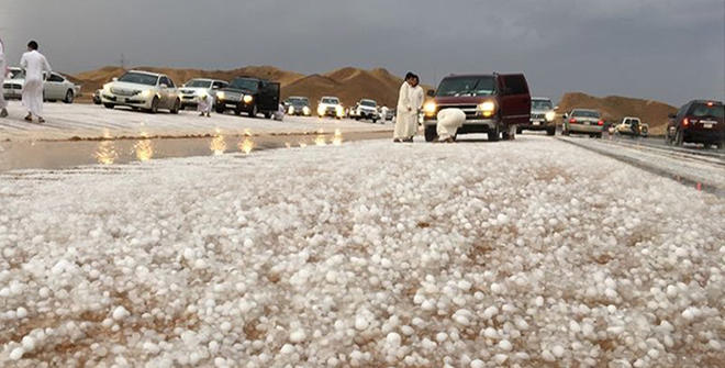 ریاض۔۔۔۔ریاض ریجن کے شمالی اور مغربی علاقوں میں بارش سے پیدا ہونیوالے سیلاب نے ریاض مکہ شاہراہ بند کردی جبکہ اشیقر میں سیلاب ا ونٹ کو بہا لے گیا۔اشیقر میں موسلادھار بارش نے بھاری نقصان پہنچایا۔یہاں ژالہ باری بھی ہوئی۔الغاط کمشنری میں بارش سے وادیاں پانی سے لبالب بھر گئیں۔مقامی شہری بارش رکنے کے بعد خوبصورت مناظر اور خوشگوار موسم سے لطف اٹھانے کیلئے آبادی سے باہر نکل آئے۔ژالہ باری کے مناظر کی وڈیو کلپ بناکر سوشل میڈیا پر جاری کردی گئیں۔