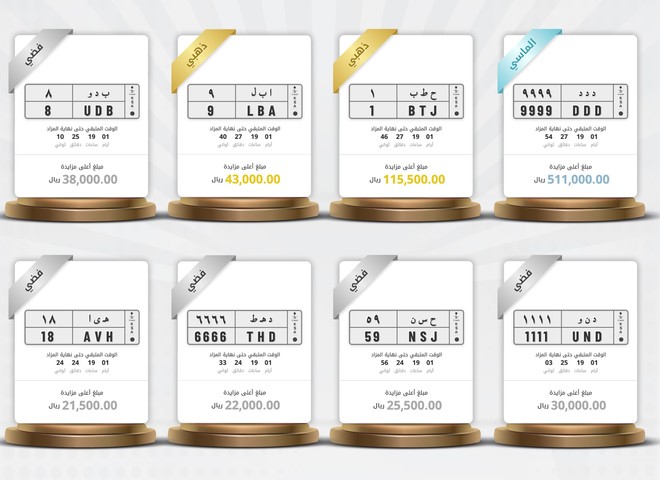 نمایاں نمبر پلیٹوں کی نیلامی میں 10 لاکھ ریال مالیت کی بولیاں