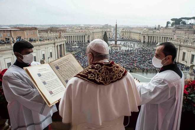 اٹلی میں اس ہفتے کورونا کے ریکارڈ کیسز سامنے آنے کی وجہ سے چند ہزار لوگ ہی ایس ٹی پیٹر سکوائر میں پوپ کے روایتی کرسمس ڈے کے خطاب کو سننے آئے۔ عموماً پوپ کے خطاب کے موقع پر سکوائر لاکھوں لوگوں سے بھر جاتا ہے۔