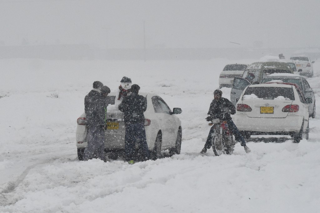 خشک سالی کے خطرے سے دو چار بلوچستان کے بالائی علاقوں میں برفباری کو امید کی علامت اور خوشحالی کی نوید سمجھا جاتا ہے (فوٹو: اے ایف پی)