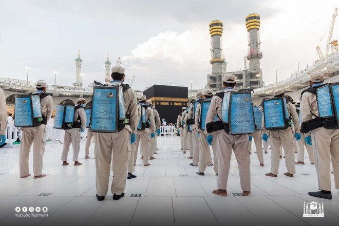 حرم کے مختلف حصوں میں مختلف قسم کی سینیٹائزنگ کے لیے کارکنوں کی تعداد میں بھی اضافہ کردیا گیا ہے۔