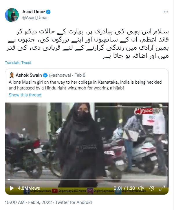 واضح رہے انڈین ریاست کرناٹک رواں ہفتے احتجاجی مظاہروں کی لپیٹ میں رہی ہے۔ منگل کو کرناٹک کے ضلع شموگا میں زعفرانی مفلر پہنے طلبہ نے حجاب پہنی طالبات کو ہراساں کیا تھا اور طلبہ و طالبات کے درمیان نعرے بازی بھی دیکھنے میں آئی تھی۔