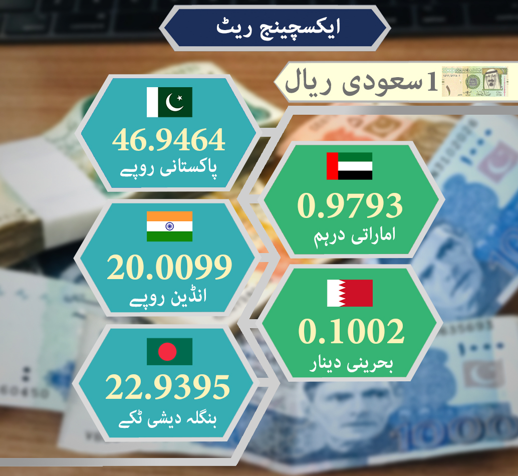 سعودی عرب کے مختلف ٹرانزیکشن مراکز کے مطابق جمعرات کو سعودی ریال کا ریٹ کیا ہے؟