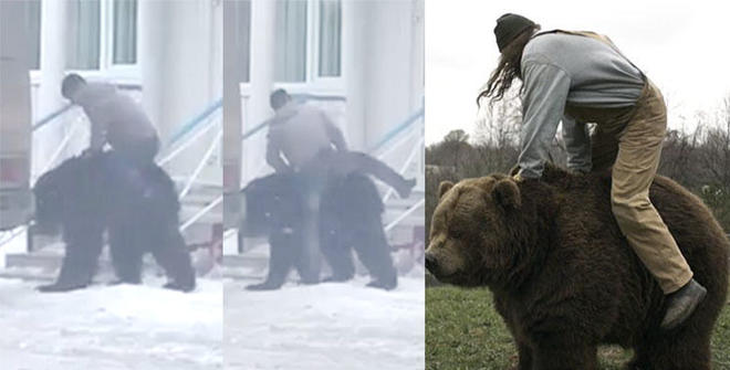 گبکنسکی،روس ..... وسطی روس کے علاقے گبکنسکی میں ایک وڈیو نے دلچسپ بات چھیڑ دی ہے جس میں ایک شخص کو ریچھ کی پشت پر اسی طرح سوار ہوتے دکھایا گیا ہے جس طرح گھڑ سوار اچھل کر گھوڑے پر سوار ہوتے ہیں اور وڈیو فوٹیج سے پتہ چلتا ہے کہ ریچھ پر سواری کے بعد وہ اسے دوڑاتا بھی ہے مگر اسے قابو میں رکھنے کی بھی کوشش کررہا ہے۔ کچھ لوگ اس وڈیو کو دیکھ کر کہہ رہے ہیں کہ یہ شخص کسی سرکس سے تعلق رکھتا ہے یا جانوروں کو تربیت دیتا ہے اورریچھ بھی اسی سرکس کا حصہ ہے۔ حیرت کی بات یہ ہے کہ ریچھ کا قد اس پر سواری کرنے والے شخص سے نکلتا ہوا تھا تاہم وڈیو سے یہ بھی پتہ چلتا ہے کہ ریچھ کو علاقے کی برفپوش سڑک پر ایک بلڈنگ کے سامنے کھڑا رکھا گیا تھا۔گھڑ سوار کسی خاص یا حفاظتی لباس میں بھی نہیں تھا اس نے صرف دونوں ہاتھ ریچھ کی پیٹھ پررکھے اورسوار ہوگیا۔ ریچھ پر سواری کے بعد وہ اسے پیار کرتا نظر آیا۔
