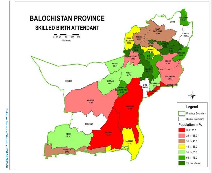 بلوچستان میں سکلڈ برتھ اٹینڈ یعنی کسی تربیت یافتہ طبی اہلکار کے ذریعے زچگی کی شرح صرف 38 فیصد ہے۔ (فوٹو: پاکستان ادارہ شماریات)