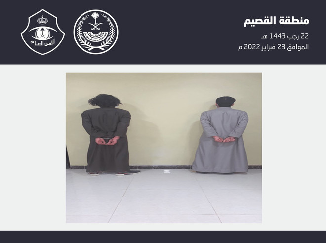 قصیم پولیس کے ترجمان نے کہا ہے کہ’ تجارتی مراکز میں ڈاکہ ڈالنے اور گاڑی چوری میں ملوث دو شہریوں کو نشاندہی کے بعد حراست میں لیا گیا‘۔
