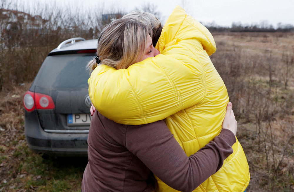 نتالیا ابلییوا نے ہنگری میں سرحد کے قریب اینا سیمیوک سے ملاقات کی۔ فوٹو: روئٹرز
