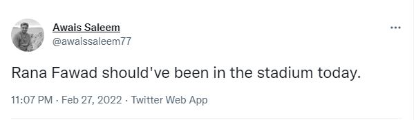لاہور کی ٹیم کے لیے اتنا بڑا دن تھا لیکن آج بھی ٹیم کے مالک فواد رانا گراؤنڈ میں نظر نہیں آئے۔ اویس سلیم نامی صارف نے لکھا ’فواد رانا کو آج سٹیڈیم میں ہونا چاہیے تھا آج۔‘