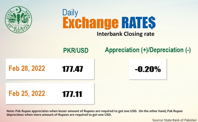گذشتہ کاروباری ہفتے کے آخری روز پاکستانی روپے کے مقابلے میں ڈالر کی قیمت 177.11 پیسے تھی جو آج 36 پیسے کے اضافے کے بعد 177.47 روپے ہوگئی ہے۔