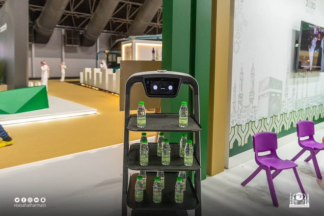 نمائش میں حرمین انتظامیہ کے سینیٹائزر ربورٹ اور زمزم تقسیم کرنے کے ربورٹ کو سب سے زیادہ پسند کیا جا رہا ہے۔