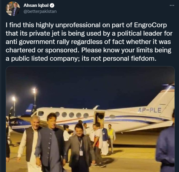 اینگرو کی جانب سے اپنے طیارے سے متعلق وضاحت بھی کچھ افراد کو مطمئن نہ کر سکی۔ مسلم لیگ ن کے رہنما احسن اقبال نے لکھا کہ ’اینگرو ایک پبلک لسٹڈ کمپنی ہے، اسے ایسا نہیں کرنا چاہیے۔‘