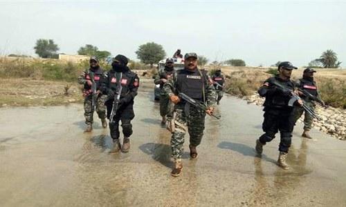 ڈی جی خان ...ڈیرہ غازی خان میں رینجرز، حساس اداروں اور محکمہ انسداد دہشت گردی نے آپریشن ردالفساد کے تحت دہشت گردوں،سہولت کاروں اور جرائم پیشہ عناصر کے خلاف مشترکہ کارروائی کی۔9 سے 10 مبینہ دہشت گرد ہلاک ہوگئے۔آئی ایس پی آر کے مطابق فائرنگ کے تبادلے میں رینجرز کے 3 اہلکار جاں بحق جبکہ 2 شدید زخمی ہوئے۔ ترجمان نے بتایا کہ ڈیرہ غازی خان سے 15 کلومیٹر جنوب میں چوٹی زیریں کے نزدیک بستی دادوانی میں دہشت گردوں کے خفیہ ٹھکانے کا محاصرہ کیا گیا توفائرنگ کا تبادلہ ہوا۔ مرنے والے دہشت گردوں کا تعلق کالعدم تحریک طالبان پاکستان سے تھا۔ محمد اصغر دادوانی عرف استاد گورچانی اور محمد نعیم عرف وقاص دادوانی اغوا برائے تاوان اور دیگر سنگین جرائم میں ملوث تھے۔ جاں بحق اہلکاروں میں حوالدار آصف، سپاہی آفتاب اور عزیزاللہ شامل ہیں۔ آئی ایس پی آر کے بیان میں کہا گیا کہ دہشت گردوں کے خلاف آپریشن تا حال جاری ہے ۔